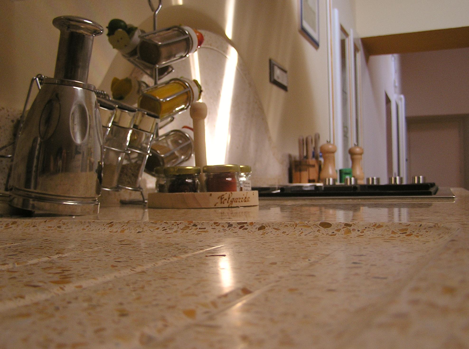 Dettaglio del gocciolatore di un lavandino in graniglia per cucina.